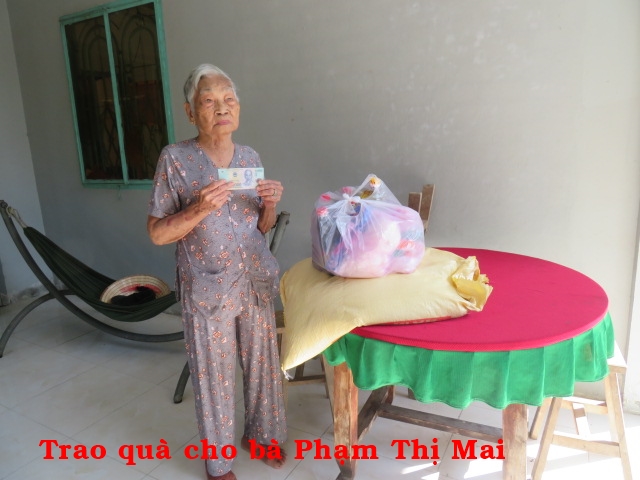 81. Bà Phạm Thị Mai, 90t, nhà ở ấp Tân Lợi, xã Tân Phú Tây, huyện Mỏ Cày Bắc, tỉnh Bến Tre. Bà sống một mình, hiện tại bà đang ở đậu nhà cháu.