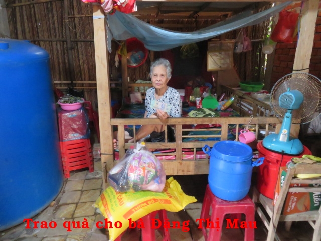 130. Bà Đặng Thị Mau 78t nhà ở Bồn Bồn xã Thạnh Phong, huyện Thạnh Phú, tỉnh Bến Tre. Bà sống với con trai nhưng rất nghèo hàng ngày đi làm phụ hồ.