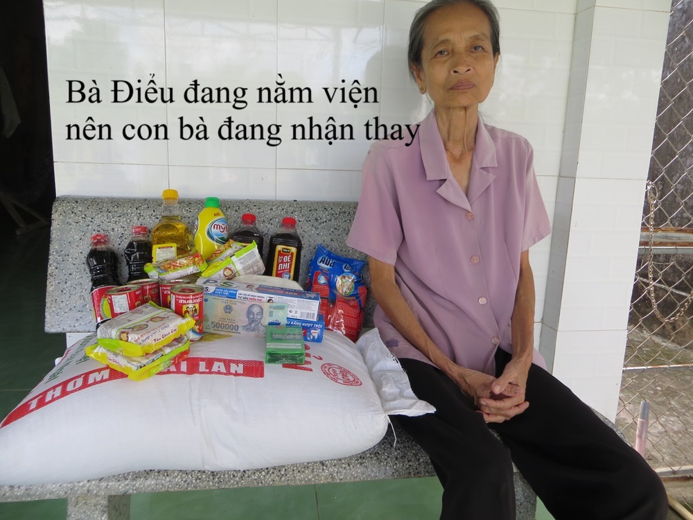 Mrs. Võ Thị Điểu, 91 years old. She has a heart condition and is currently hospitalized. Her daughter received support on her behalf. Her daughter lives at 70/2, Thạnh An Hamlet, Bình Thạnh Commune, Vĩnh Long Province.