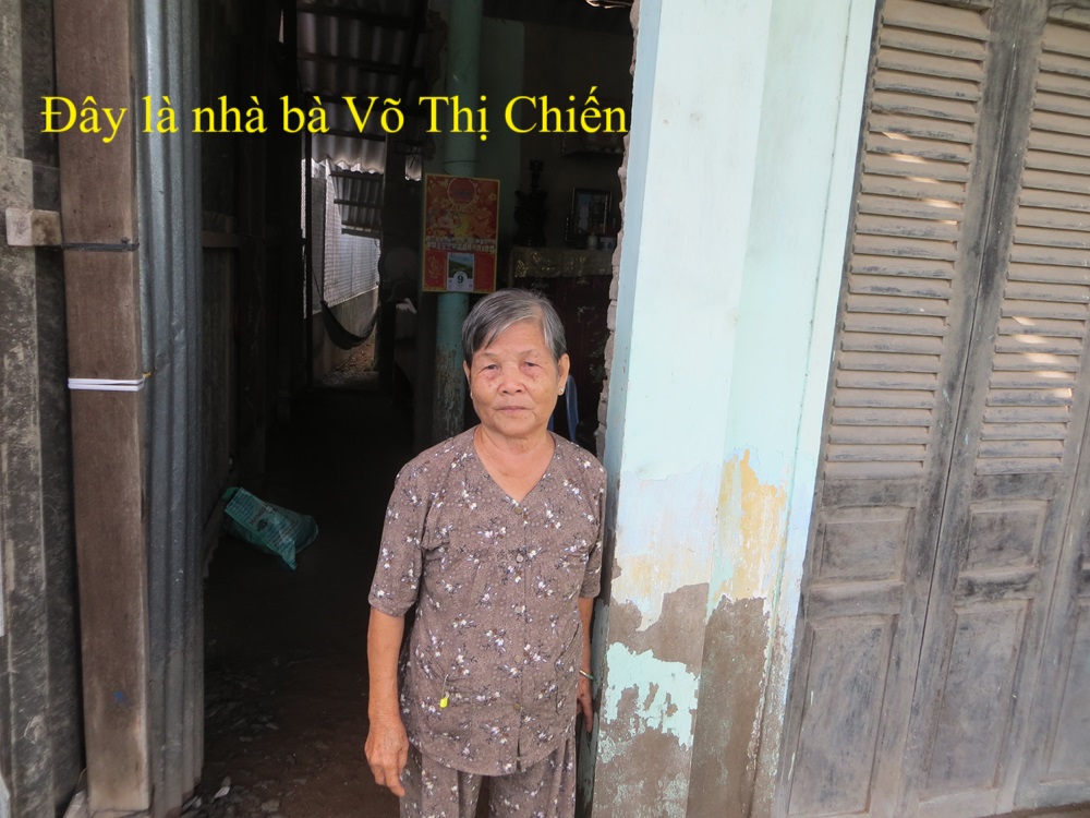 8. Bà Võ Thị Chiến, 78 tuổi. Bà Chiến bị bệnh thiếu máu não nên phải uống thuốc mỗi ngày. Bà hiện đang sống với người con trai 34 tuổi, tại số nhà 61/2, ấp Thạnh An, xã Bình Thạnh, huyện Thạnh Phú, tỉnh Bến Tre cũ, hiện nay là xã Thạnh Phú, tỉnh Vĩnh Long.