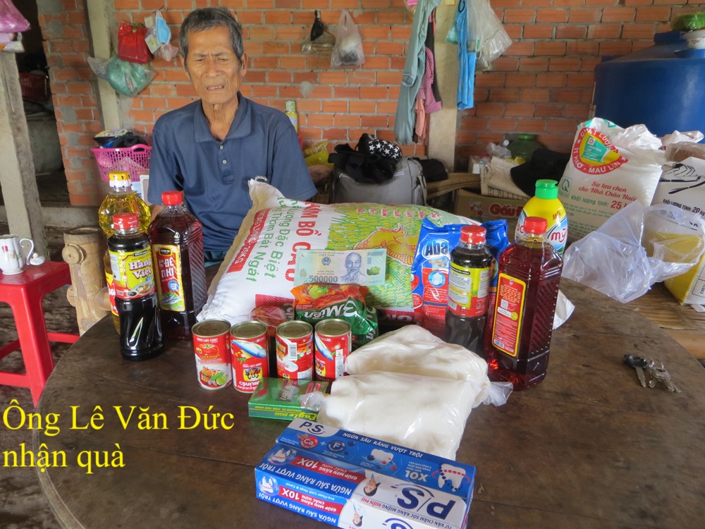 Mr. Lê Văn Đức, 70 years old. He has heart disease and suffered a heart attack, but was taken to the hospital in time and recovered. He now must take heart medication daily. He lives at 18/2, An Ninh Hamlet, An Qui Commune, Thạnh Phú District, now An Qui Commune, Vĩnh Long Province.