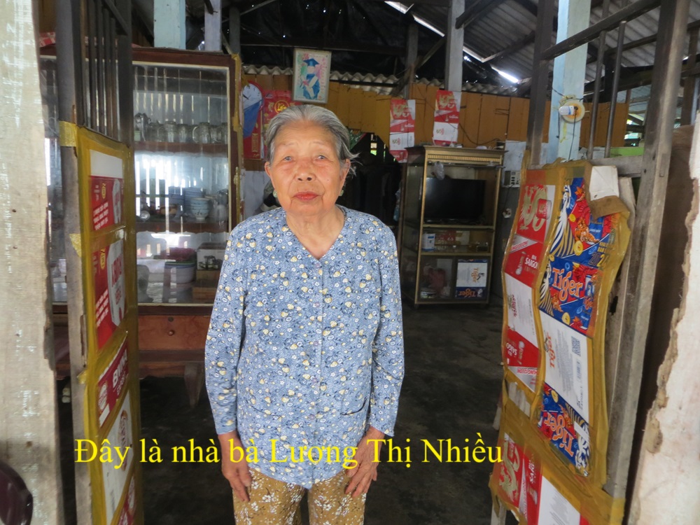 Mrs. Lương Thị Nhiều, 82 years old. She lives with her son at 83/3, An Bình Hamlet, Mỹ An Commune, Thạnh Phú District, now Thạnh Phú Commune, Vĩnh Long Province.