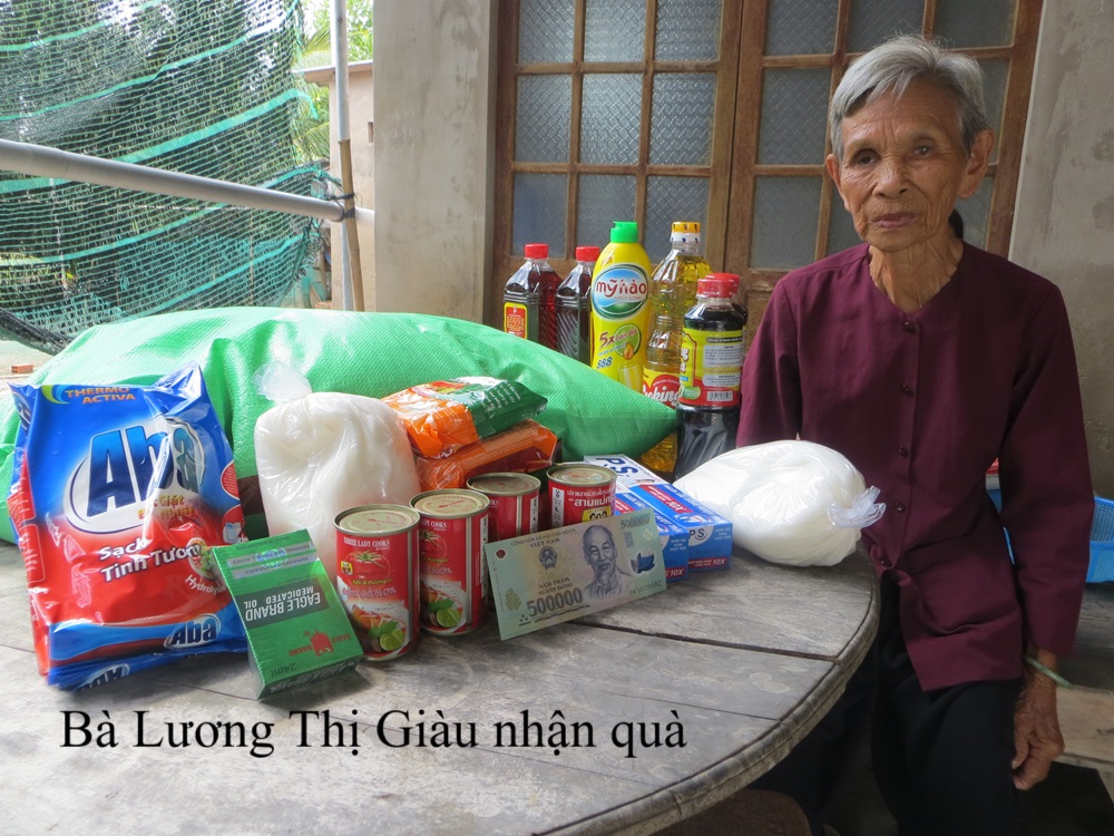50. Bà Lương Thị Hung, 80 tuổi. Bà sống chỉ một mình. Đường vào nhà bà Hung rất khó đi, bề ngang con lộ có 8 tấc chỉ đủ một chiếc xe honđa đi được. Nếu gặp xe ngược chiều thì tránh nhau rất vất vả. Vào mùa mưa thì đường trơn trợt nên phát quà cho bà Hung rất vất vả. Hiện bà đang ở tại địa chỉ 107 khu phố 2, thị trấn Thạnh Phú, huyện Thạnh Phú, tỉnh Bến Tre cũ, hiện nay là xã Thạnh Phú, tỉnh Vĩnh Long.