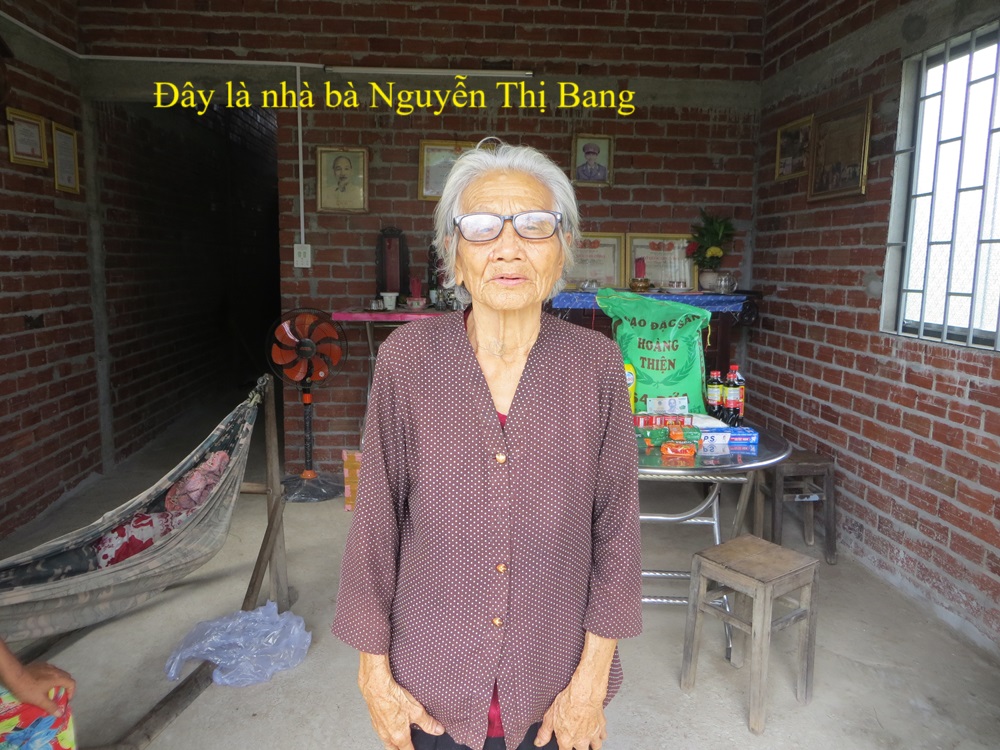 Mrs. Nguyễn Thị Bang, 86 years old. She suffers from high blood pressure and must take lifelong medication. She lives alone at 24/1, Thạnh Quí A Hamlet, Bình Thạnh Commune, now Thạnh Phú Commune, Vĩnh Long Province.