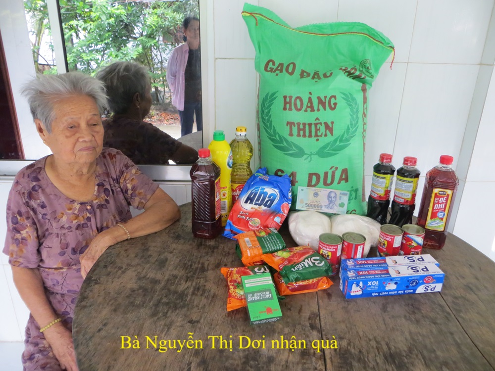 Mrs. Nguyễn Thị Dơi, 89 years old. She lives with her daughter in Thạnh Quí Hamlet, Thạnh Phú Town, now Thạnh Phú Commune, Vĩnh Long Province.