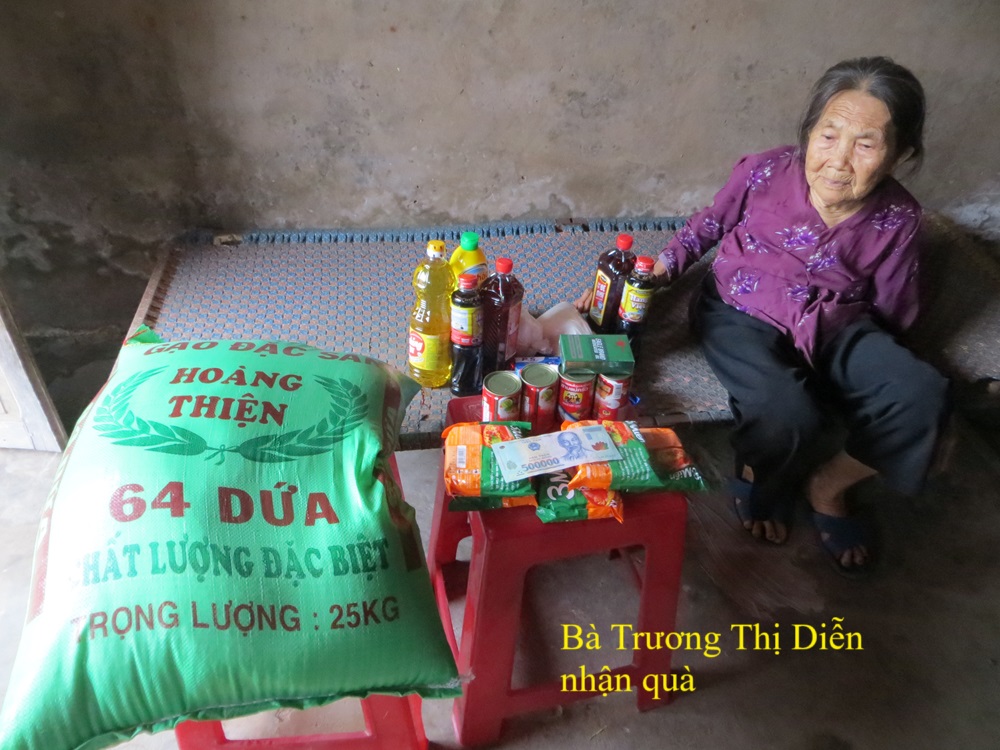 Mrs. Trương Thị Diễn, 85 years old. She had a stroke and is immobile. She lives with her mentally ill daughter, and all caregiving is provided by her eldest daughter who lives nearby. She resides at 9/4, Thạnh Lợi Hamlet, Bình Thạnh Commune, now Thạnh Phú Commune, Vĩnh Long Province.
