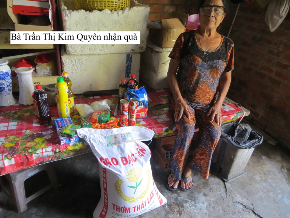 Mrs. Trần Thị Kim Quyên, 73 years old. She lives alone at 52/2, Quarter 4, Thạnh Phú Town, Thạnh Phú District, Bến Tre Province.