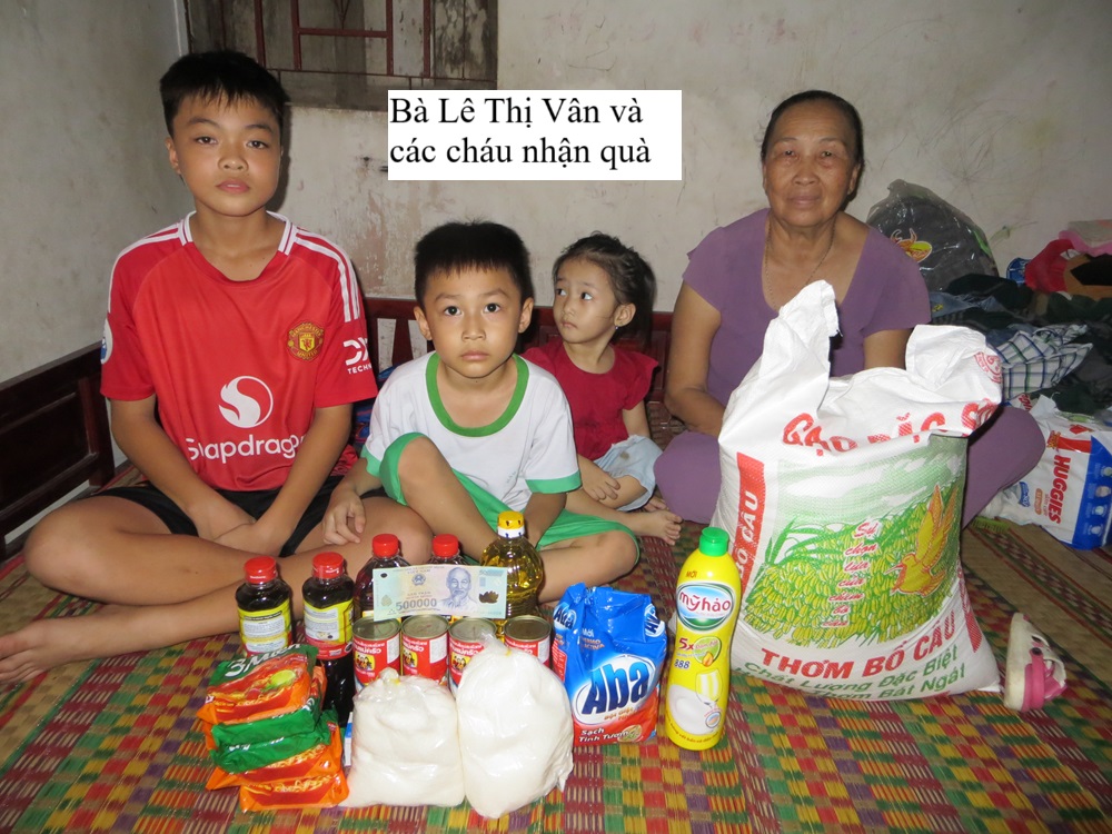 70. Bà Lê Thị Vân, 73 tuổi. Bà đang nuôi các cháu nội và ngoại gồm 3 người là Lê Minh Bảo, 12 tuổi, học lớp 7, Dương Thiên Khôi, 5 tuổi học mẫu giáo và Dương Bảo Hân, 2 tuổi. Bà Vân hết tuổi lao động nên cuộc sống khó khan để lo cái ăn hang ngày cho các cháu. Bà và các cháu đang số tại só nhà 253/1, ấp Thạnh Quí A, xã Bình Thạnh, huyện Thạnh Phú, tỉnh Bến Tre.