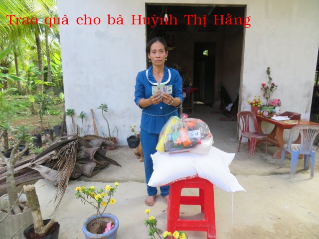 72. Bà Huỳnh Thị Hằng, 50 tuổi, nhà ở gần nhà thờ Tú San, Xã Hương Mỹ, Tỉnh Vĩnh Long. Bà sống cùng với mẹ già nay 85 tuổi hiện tại nằm một chổ. Bà không chồng con, nhà không ruộng đất. Hằng ngày ai thuê gì làm nấy.