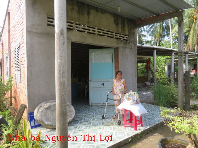 73. Bà Nguyễn Thị Lợi, 59 tuổi, nhà ở gần nhà thờ Tú San, Xã Hương Mỹ, Tỉnh Vĩnh Long. Bà bị tật bẩm sinh ở chân, không chồng con hiện tại đang sống một mình.