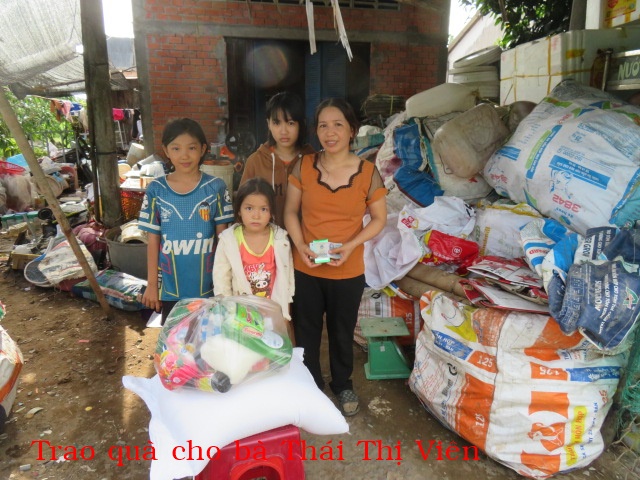 129. Bà Thái Thị Viên, 42 tuổi, nhà ở Giồng Dài, Xã Thạnh Phong, Tỉnh Vĩnh Long. Bà có 3 đứa con còn nhỏ, chồng chết. Hằng ngày đi mua ve chai để kiếm sống.