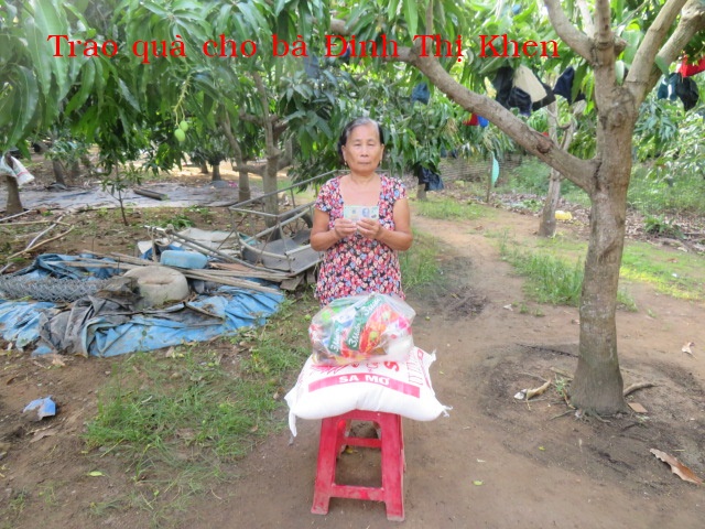 131. Bà Đinh Thị Khang, 75 tuổi, nhà ở Bồn Bồn, Xã Thạnh Phong, Tỉnh Vĩnh Long. Nhà không ruộng đất, không chồng con hiện tại đang sống một mình.