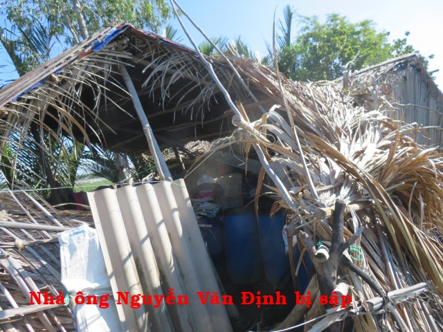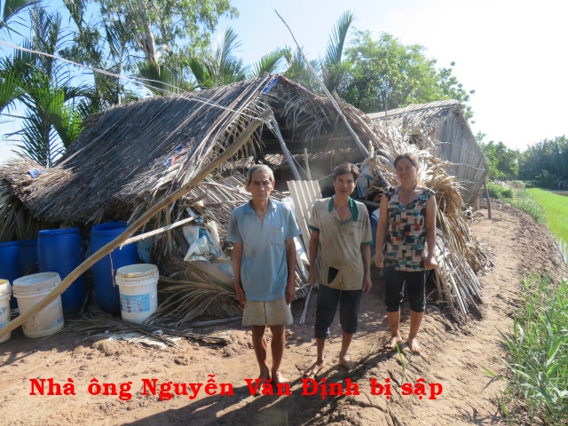 Ông Nguyễn Văn Định ,73t ở ấp An Ngãi A, xã An Thạnh, huyện Thạnh Phú, tỉnh Bến Tre. Gia đình có 4 người: ông, 2 con và 1 cháu. Người cháu nay 16t đi làm thuê không nhà. Nhà không có ruộng đất, căn nhà được cất nay hơn 8 năm. Hiện tại đã bị sập mà không có tiền cất lại
