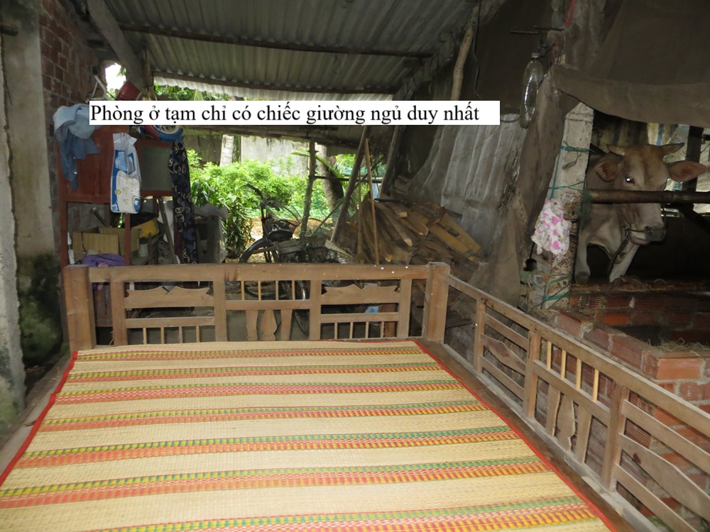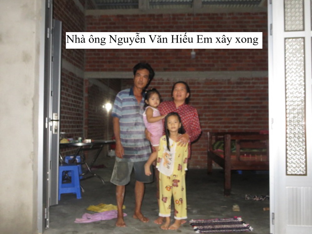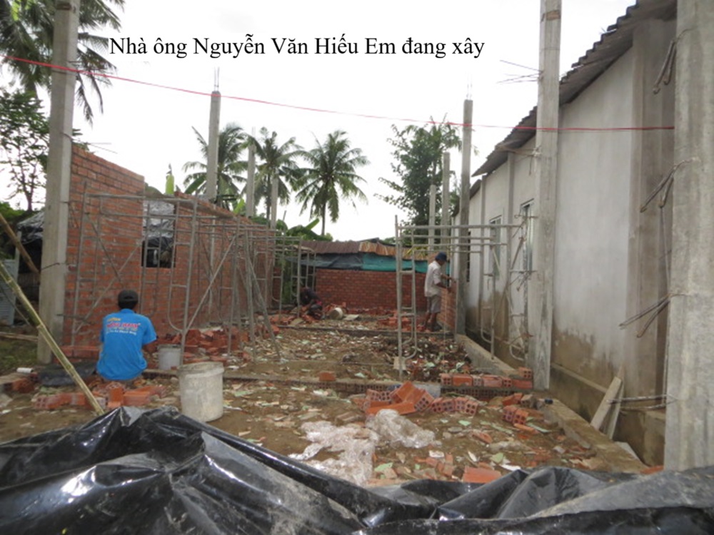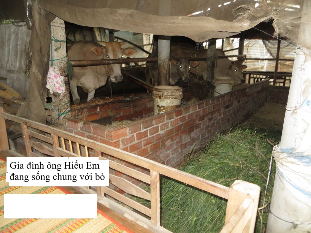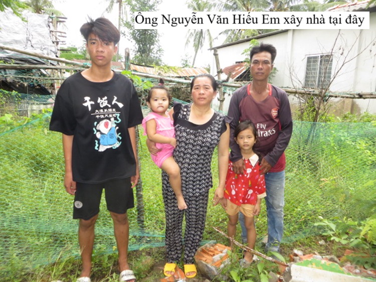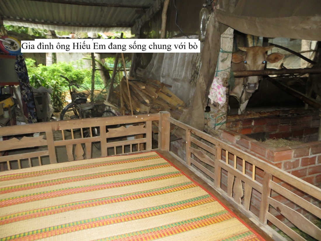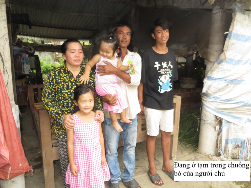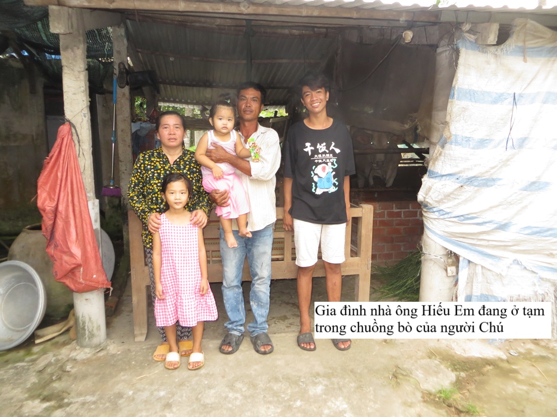 Mr. Nguyễn Văn Hiếu Em, 41 years old, and his wife Trương Thị Hồng Em, 44 years old, have three children: Nguyễn Hoàng Khang, 13 years old, currently in 8th grade; Nguyễn Hà My, 7 years old, currently in 2nd grade; and Nguyễn Ngọc Hân, 2 years old. Both Mr. Hiếu Em and Mrs. Hồng Em work as manual laborers, specifically construction helpers. Their income is just enough to get by day to day. They do not own a house and are currently living temporarily in a relative’s old cattle shed, so they do not have a formal house number. They currently live in Thạnh Quí A Hamlet, Bình Thạnh Commune, Thạnh Phú District, Bến Tre Province (formerly), now Thạnh Phú Commune, Vĩnh Long Province.