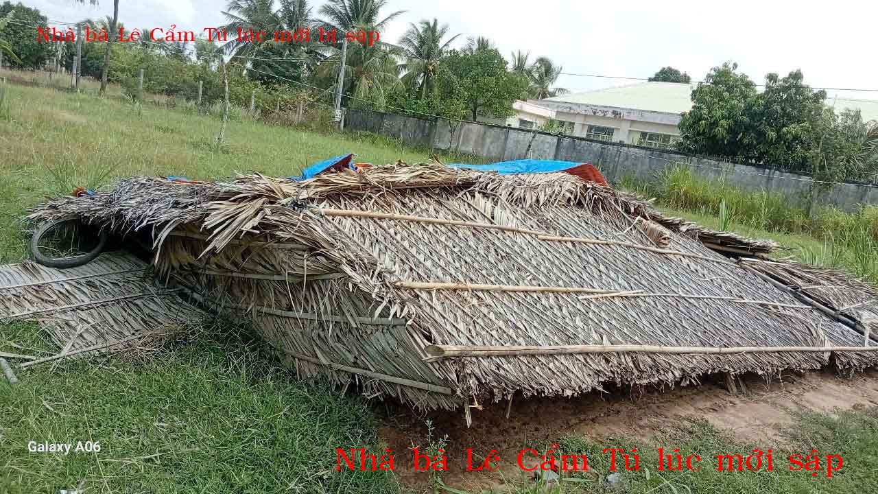 Ms. Lê Cẩm Tú is 39 years old and lives at house number 20/5 in Thạnh Trị Thượng Hamlet, Thạnh Phú Village, Vĩnh Long Province. She lives in a three-person household consisting of herself, her child, and her brother, who suffers from mental illness. Because the family owns no land, Ms. Tú sells lottery tickets every day to provide for her family’s needs. Her house collapsed on the first day of the Lunar New Year, and although more than a month and a half has passed, she still does not have the money to reconstruct it.