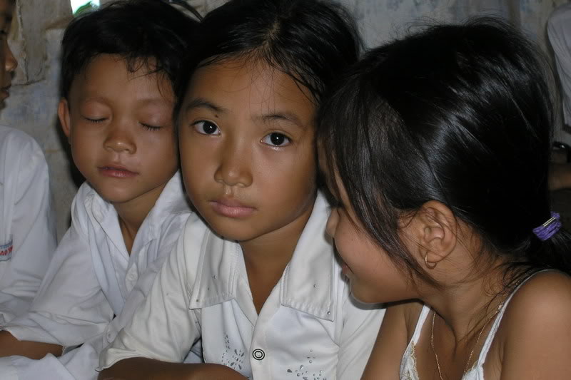 Đoàn tản ra đi thăm các em trong từng phòng học. (một vài hình ảnh, xem trong link, các em trong lớp học, không có quà)