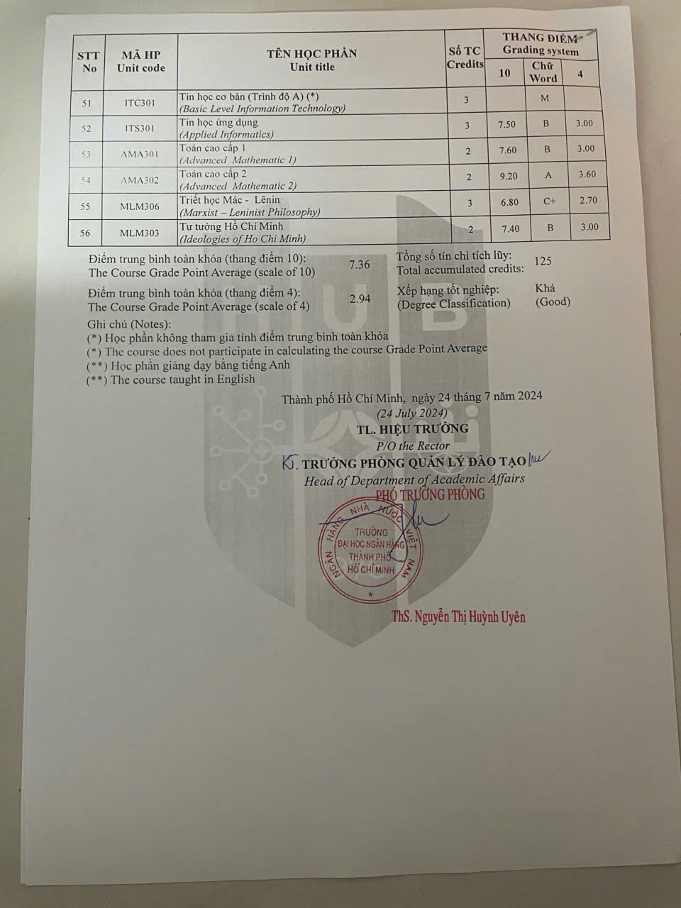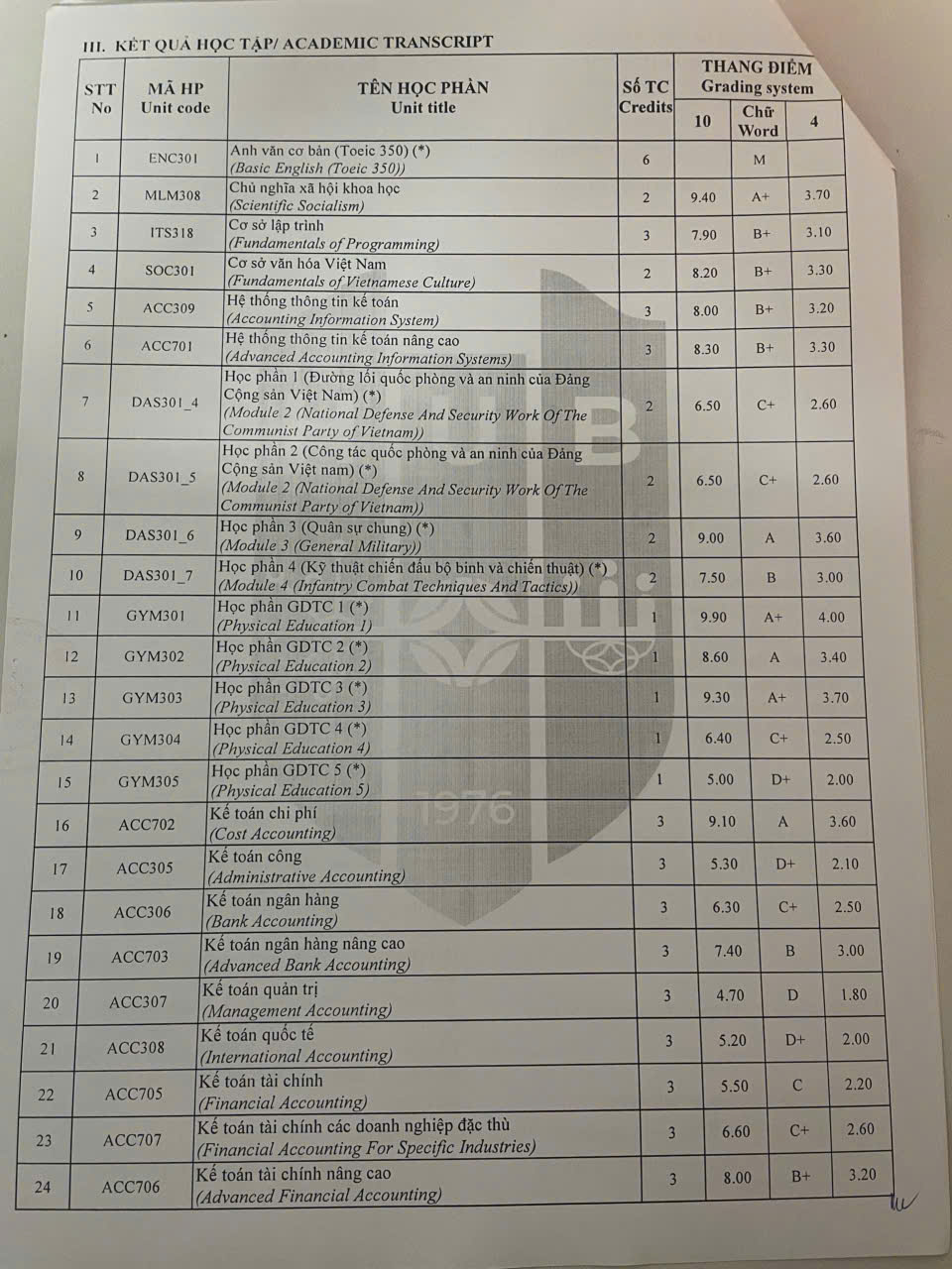 Lúc vào Đại học con có viết thư hứa với Cô Sương và quý Cô Chú là con sẽ cố gắng để tốt nghiệp loại Giỏi. Nhưng kết quả là con tốt nghiệp loại Khá, con thật sự rất rất buồn vì đã không hoàn thành được mục tiêu cũng như chưa thực hiện đúng lời hứa của con với quý Cô Chú. Nhưng con tin rằng với sự cố gắng không ngừng nghỉ, tinh thần quyết tâm mà con đang có, con sẽ phát triển hơn trong tương lai.