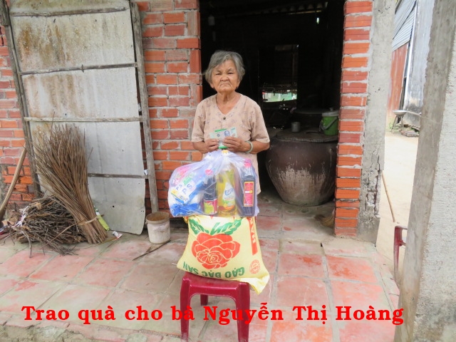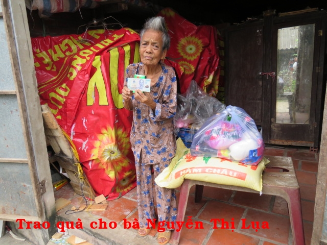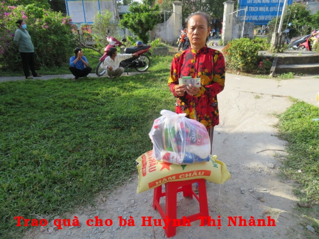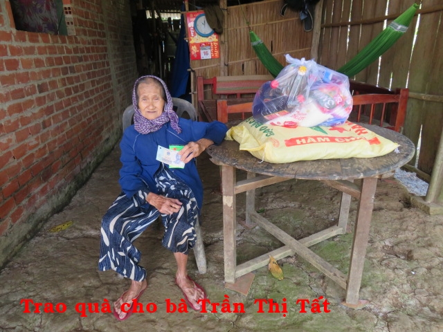 Mrs. Nguyen Thi Be, 80 years old, had a stroke and is bed ridden. Her relative received the gifts on her behalf. She lives in Phu Thinh hamlet, Phu My commune, Mo Cay Bac district, Ben Tre province.
