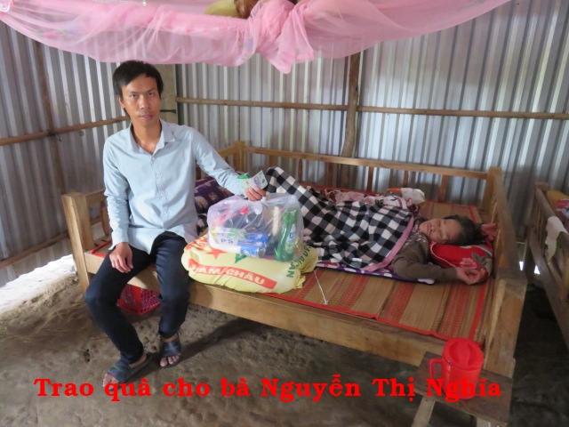 96. Bà Lê Thị Nghĩa 78t, nhà ở ấp An Bình, xã Mỹ An, huyện Thạnh Phú, tỉnh Bến Tre. Bà bị bệnh nằm 1 chỗ, hàng ngày nhờ cháu nuôi.
