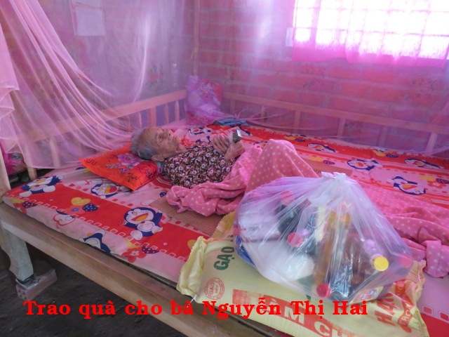 Ms. Bui Thi Hoa, 84 years old, lives in An Khuong hamlet, My An commune, Thanh Phu district, Ben Tre province. She was sick and is bed ridden. She is staying at her relative's house.
