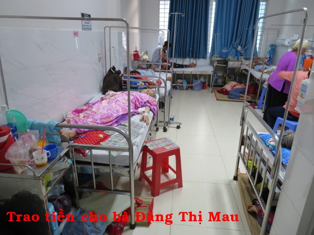 Bà Đặng Thị Mau 77t nhà ở Bồn Bồn, xã Thạnh Phong, huyện Thạnh Phú, tỉnh Bến Tre. Nhà bà rất nghèo, cách nay hơn 30 năm chồng bà là ông Đặng Văn In bị bệnh liệt một bên thì toàn gia đình do bà lo toan. Cách nay hơn 6 năm chồng bà chết được 5 ngày thì bà bị tai biến nằm 1 chỗ cho đến nay. Hiện tại bả bị té gãy xương đùi đang nằm bệnh viện Bến Tre chờ lịch mổ. Các con của bà cũng nghèo, đứa con thứ , ông Đặng Văn Chung, lấy vợ rồi theo quê vợ ở tỉnh Đồng Tháp. Hiện tại ông không có nhà phải đi ở đậu. Cách nay hơn 1 năm, ông Chung bị bệnh phổi hiện tại đã mổ nhiều lần. Cuộc sống của 2 bên đều cạn kiệt vì tiền viện tiện ăn nuôi bệnh mà không đi làm được nên rất cần tiền để chữa.
