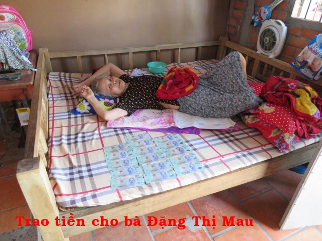 Below are the pictures and videos of our staff handed the money to Mrs Dang Thi Mau and her son,