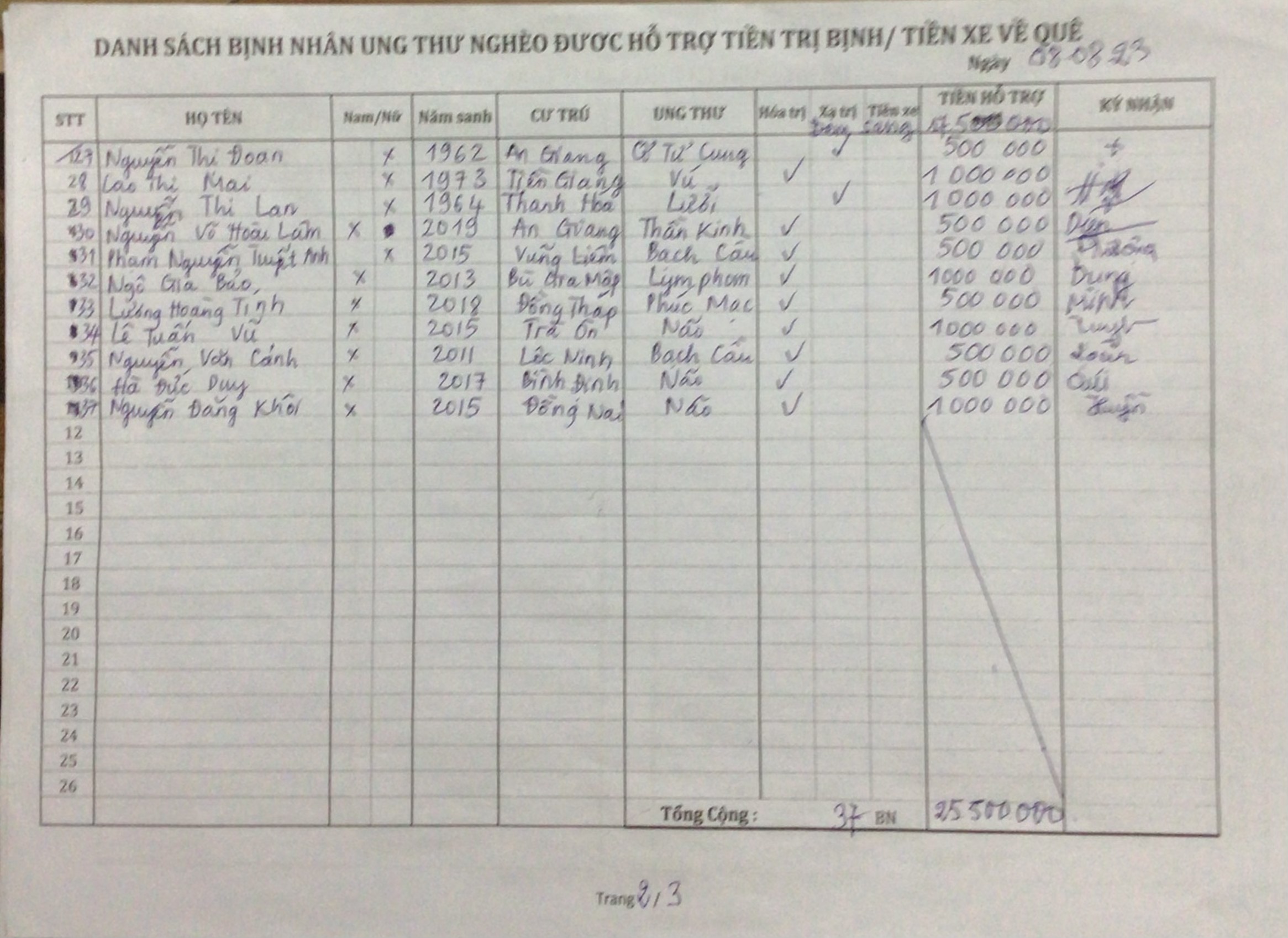 1./ Hỗ trợ 25.500.000₫ tiền trị bịnh và tặng bánh & yaourt cho 37 BNUT ngày 08/08
