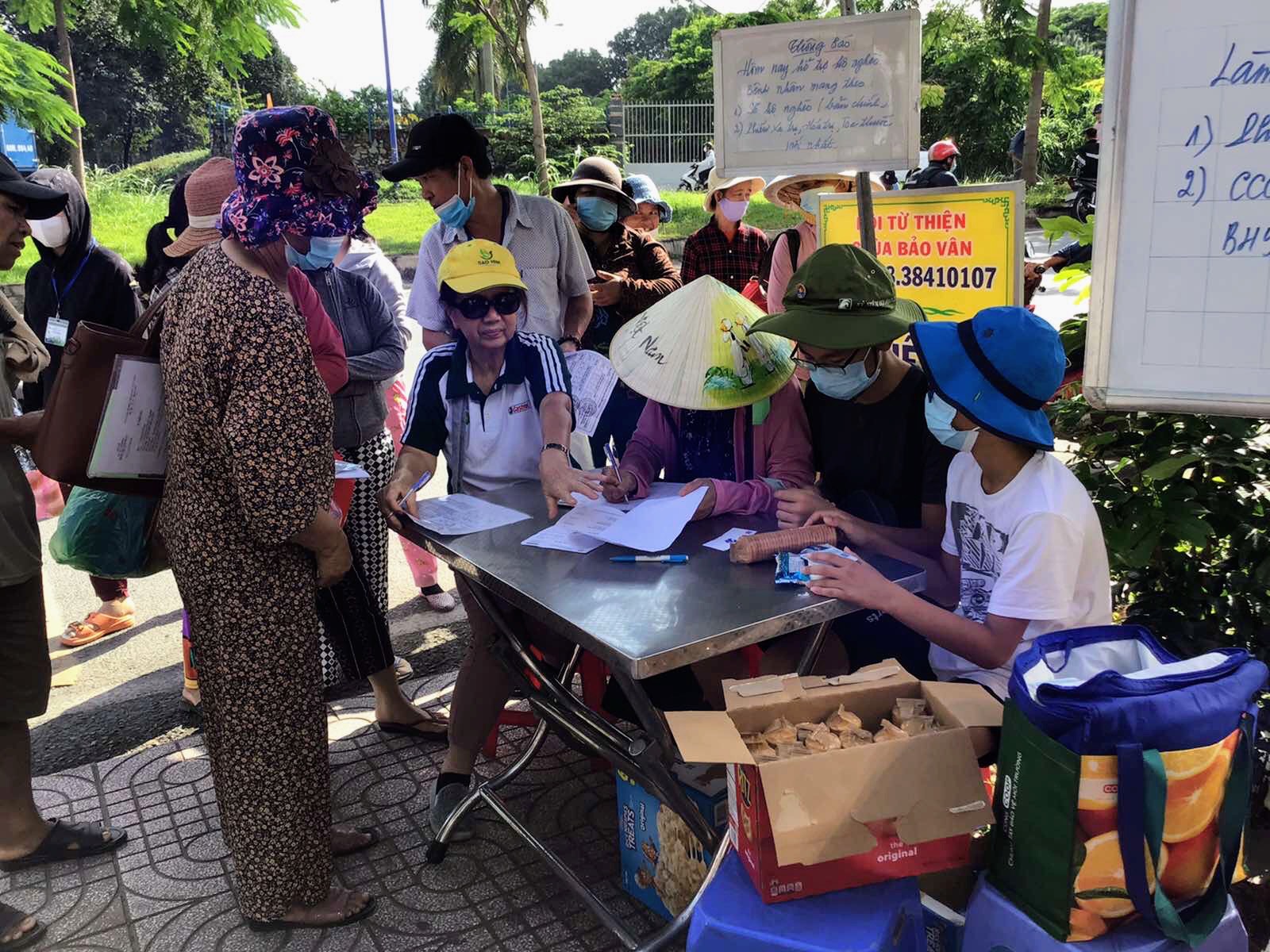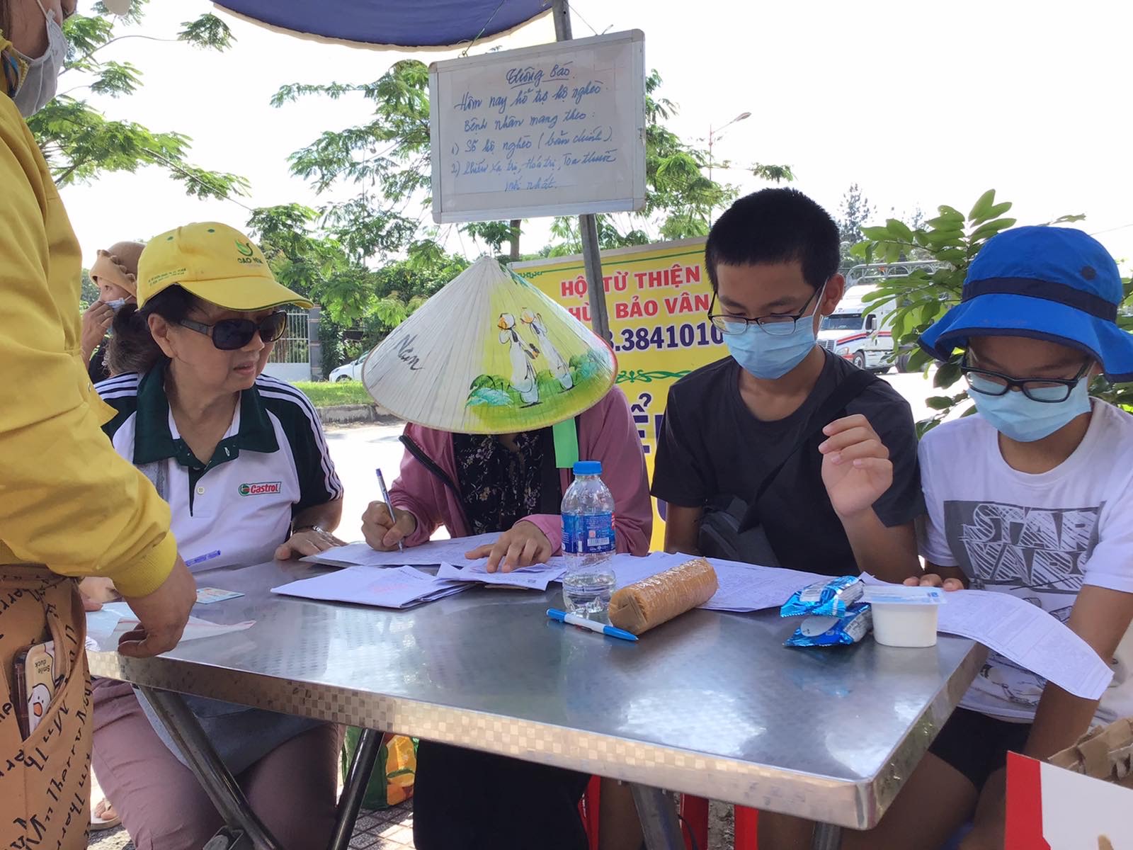 Lần tháng 8/23 này, có hai thiếu niên tặng yaourt và giúp trao tiền, yaourt & bánh cho BN ( bánh được chị Định Yang -USA tặng).