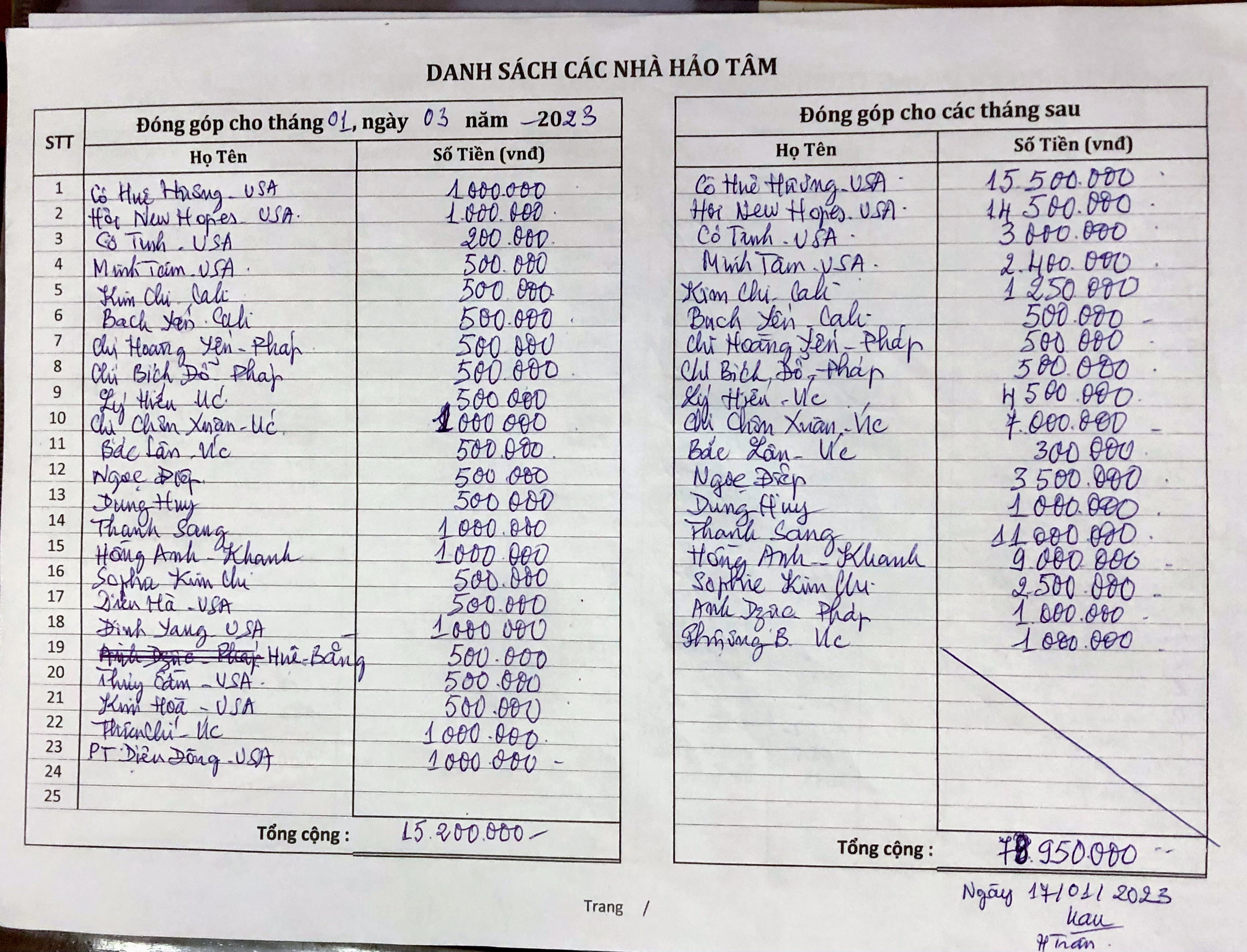 1.2/ Hinh 2: Tên các nhà hảo tâm giúp cho 24 BN trong tháng 1/23 và cho các BN trong các tháng sau.