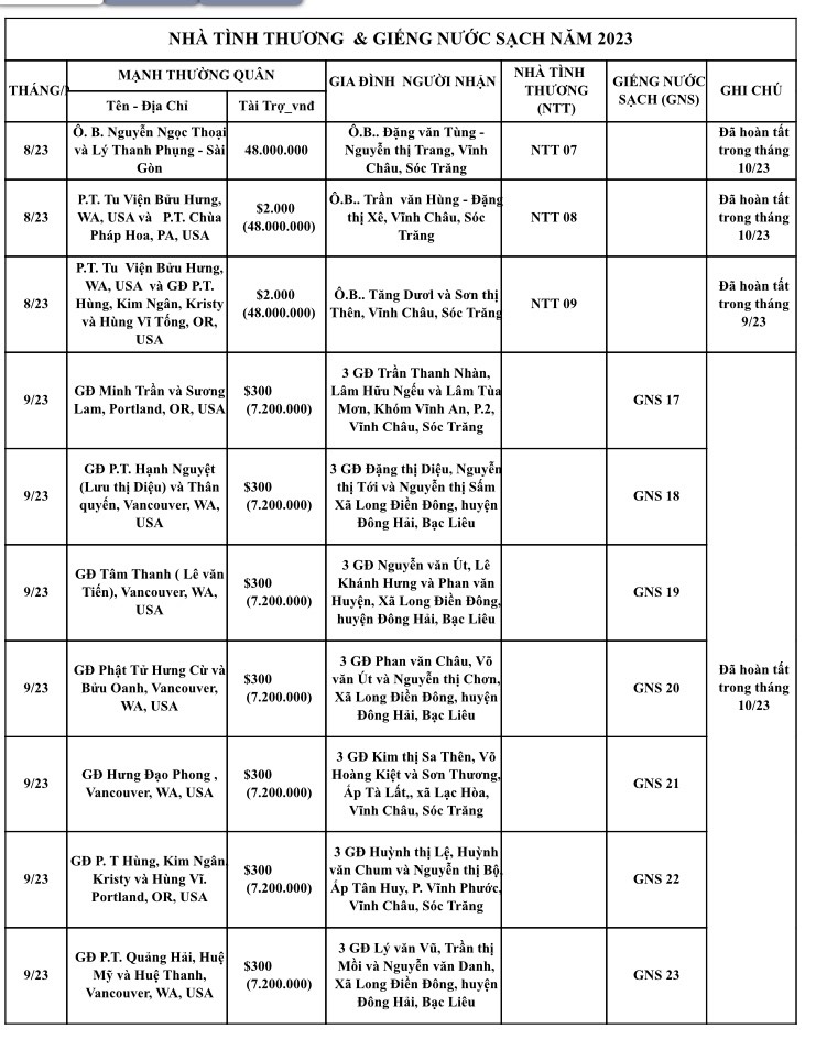 Chi tiết về 2 NTT và 7 GNS đã hoàn thành trong tháng 10/23 theo hình