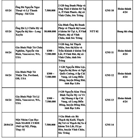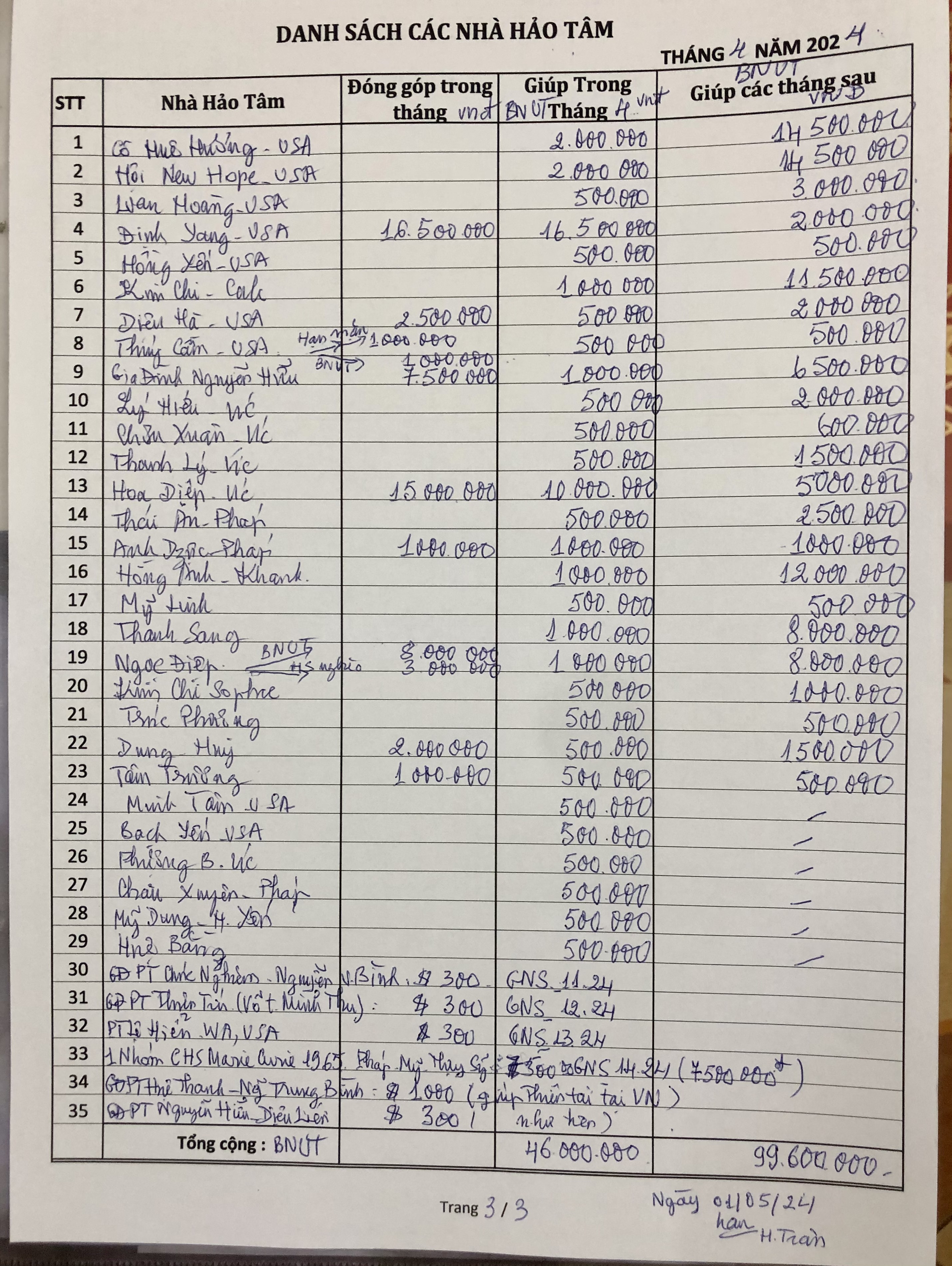 Đặc biệt cảm ơn 4 anh chị ở Pháp, Mỹ và Úc : anh Dzực, chị Định Yang, chị Hoa Diệp cùng OX Harris đã dành chút thời gian ít ỏi của mình tại VN, không ngại ngồi bên lề đường dưới cái nắng gay gắt tháng 4 tại Thủ Đức, cùng tham gia buổi hỗ trợ tiền trị bịnh & tặng quà cho gần 80 BN đang điều trị nội trú tại BVUB cơ sở 2, tp HCM ngày 15/4/24.