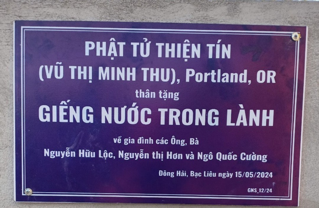 1./Tặng nước ngọt sinh hoạt và nước uống cho đồng bào bị hạn hán, nước bị nhiễm mặn ở Tiền Giang . ( chi tiết cùng hình ảnh được gởi qua email riêng)