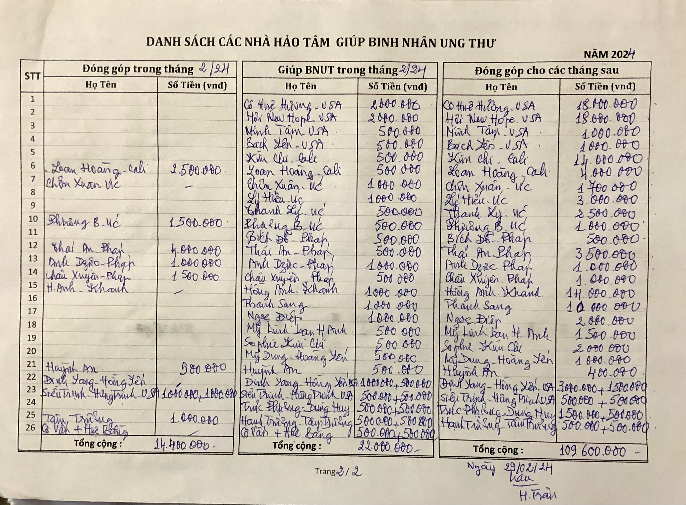 BNUT: (1) : NTT: (2); GNS: (3) ; M.A Q.12: (4); Từ thiện khác: (5); mỗ mắt.