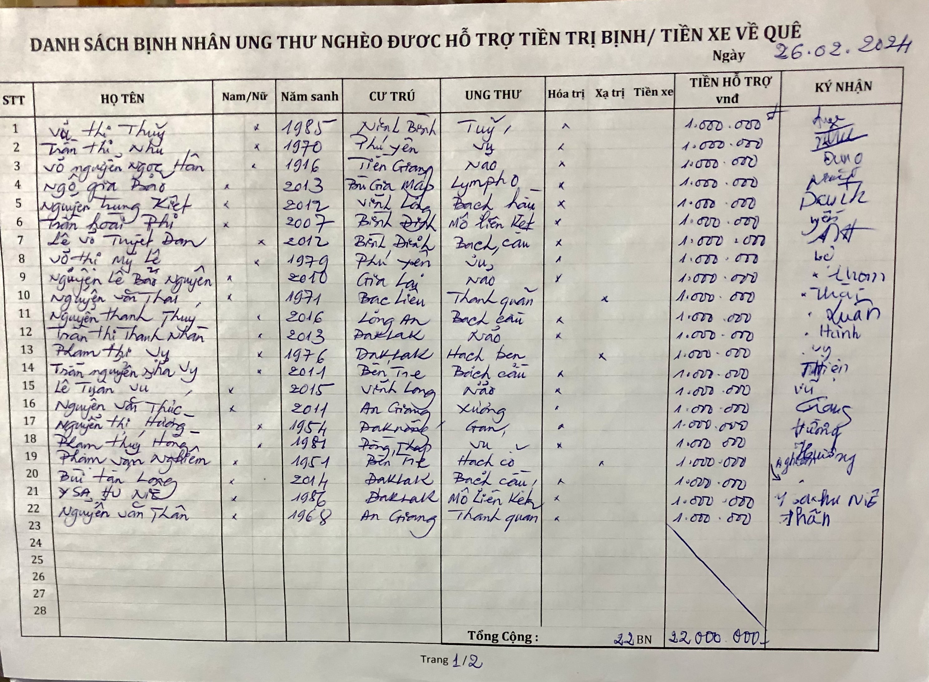 22 Bệnh Nhân đã được hỗ trợ 22 triệu tiền trị bịnh