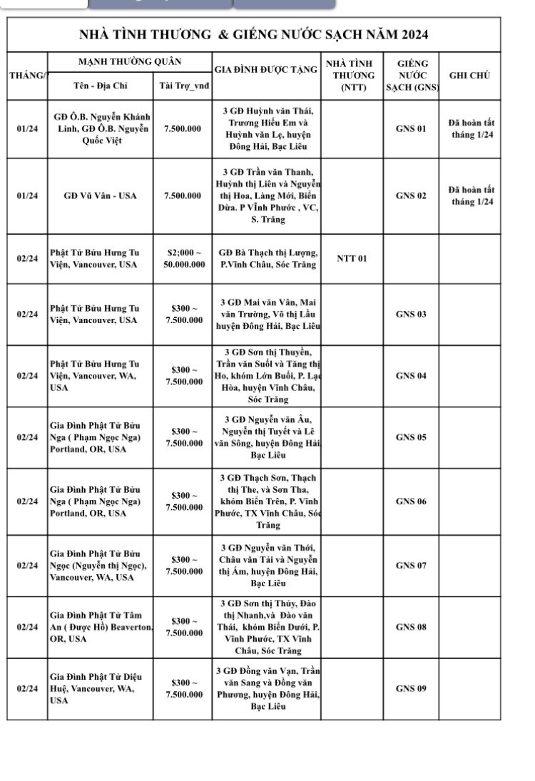2. Giếng Nước Sạch : 7 cái (GNS 03 - GNS 09) trị giá $300 x 7 = $2.100 ~ 52,5 triệu đồng.