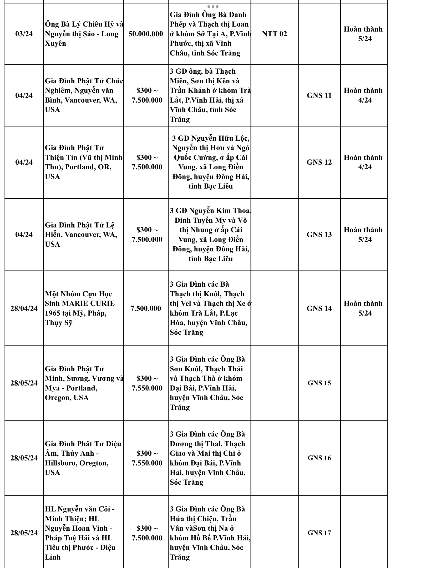 Chi tiết v/v tài trợ, thi công, hoàn thành NTT & các GNS được tóm tắt trong tập tin excel NTT_GNS 05.24, hình và video