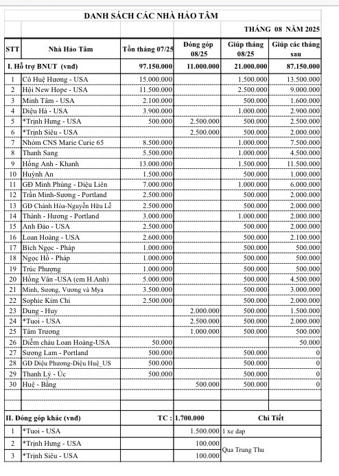 Trân quên nhờ người làm phó nhòm nên không có hình ảnh ghi lại buổi hỗ trợ BNUT tháng này. Xin lỗi quý vị thật nhiều.