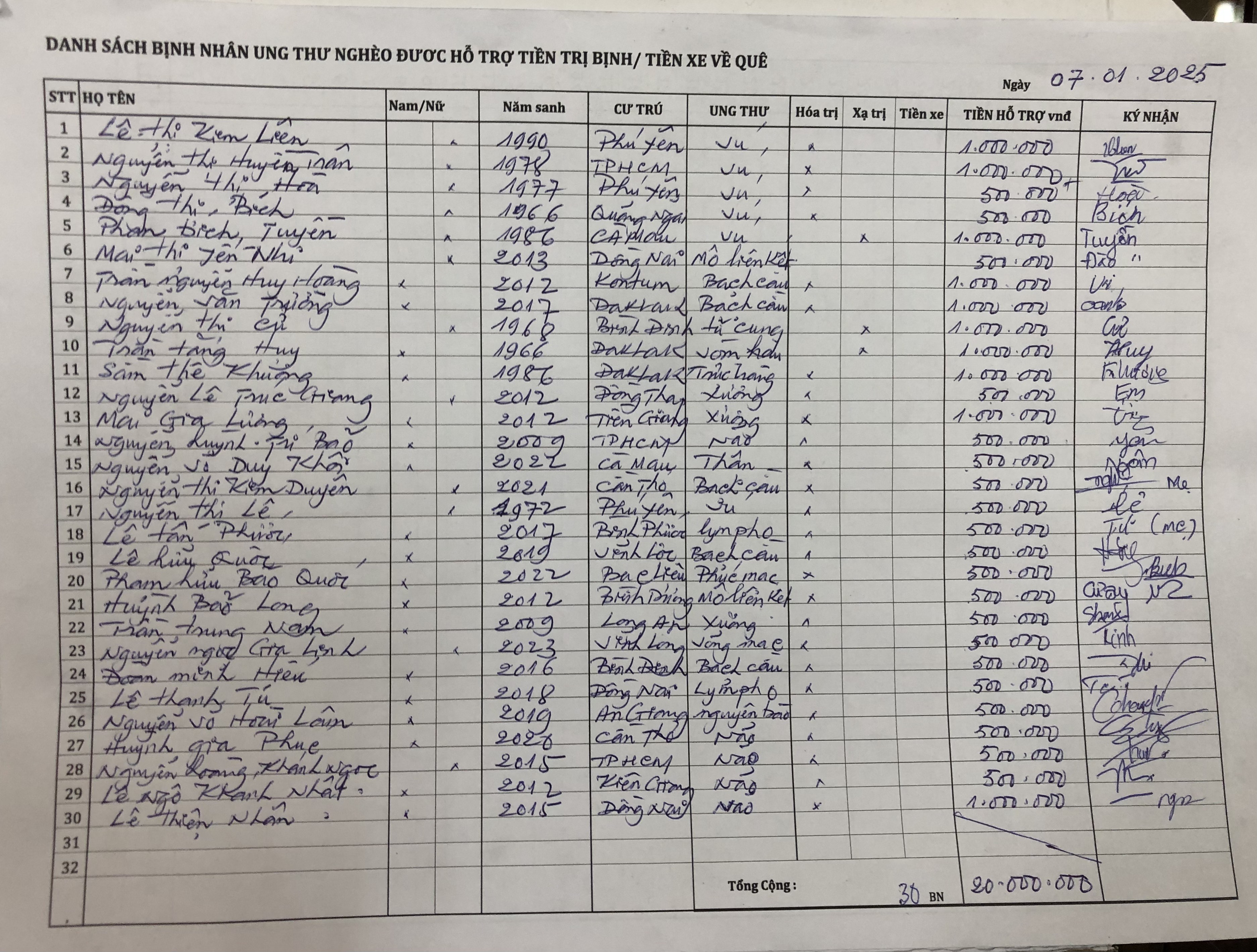 - 20 triệu đồng đã được chi cho 24 BNUT;