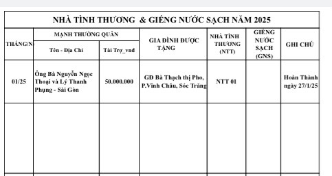 Đã tài trợ và hoàn thành Nhà Tình Thương NTT 01_25 trị giá 50 triệu tại Vĩnh Châu, Sóc Trăng.