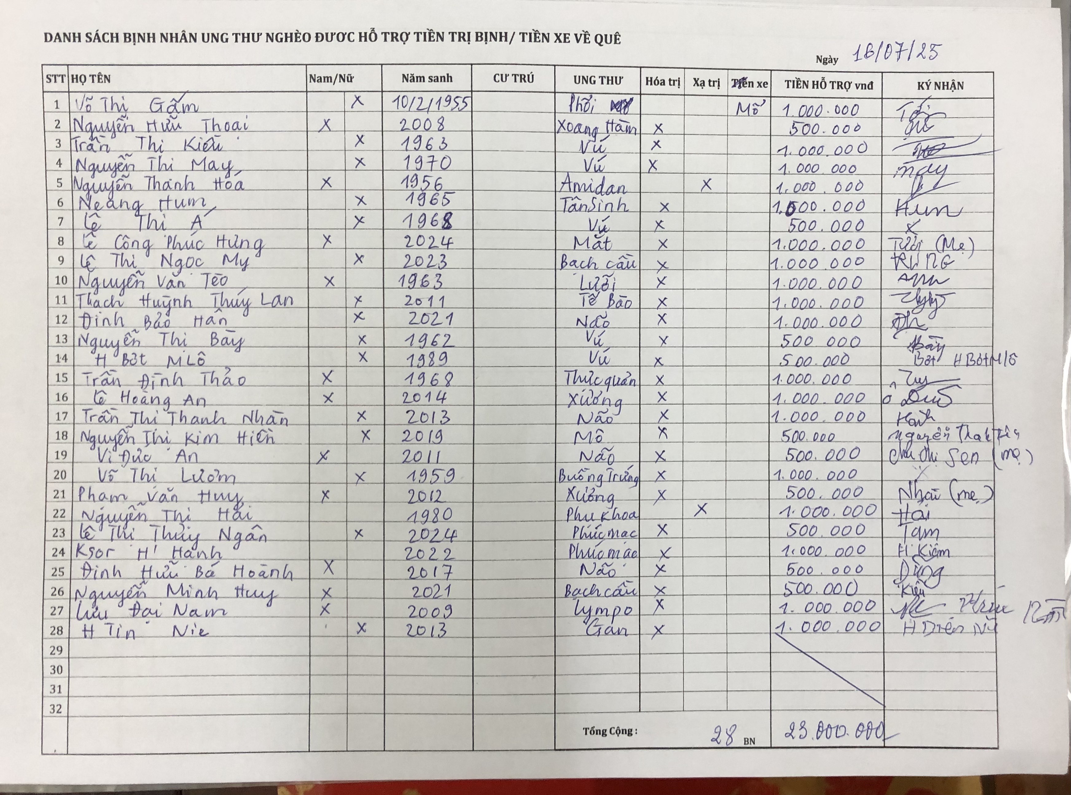 Ngoài 23 triệu tiền hỗ trợ, các BN này được tặng thêm yaourt, bánh quy cùng thú nhồi bông cho một số BN nhỏ: