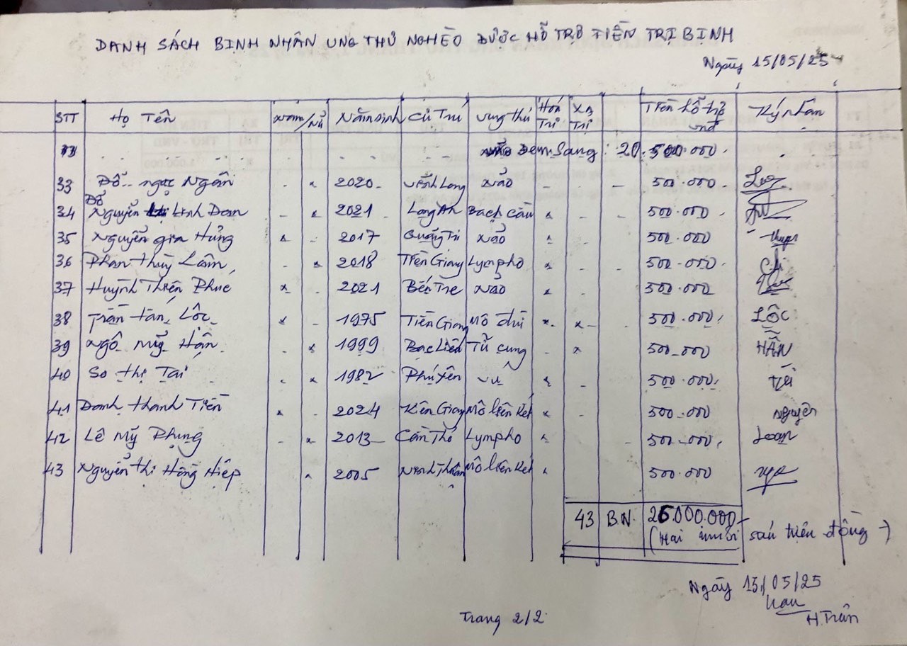 Chi tiết về nhà tài trợ, gia đình được tặng cùng tiến độ thực hiện trong hình