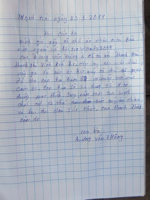 1/20/17 Cảm thương gia cảnh của gia đình ông Trương Văn Thông, chị Tammy Pham giúp thêm $200.