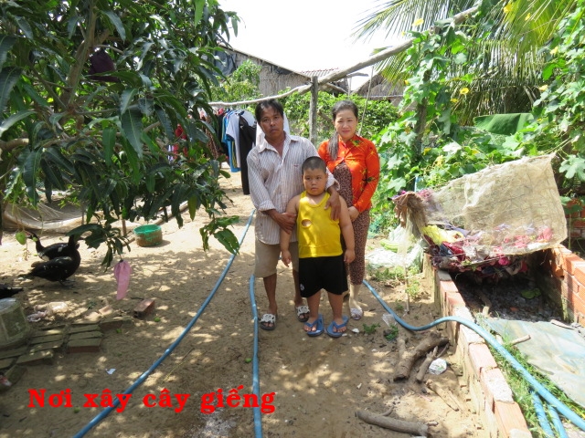 Mr. Huynh Van Phong resides in Con Dai, Thanh Phong commune, Thanh Phu district, Ben Tre province. His family has four people:himself, his wife and their two children. Every day, both of them go to the beach to pull their nets to catch fish and shrimps to sell, but they only make enough money to buy rice. The house does not have a well for fresh water, so they have to ask their neighbors.