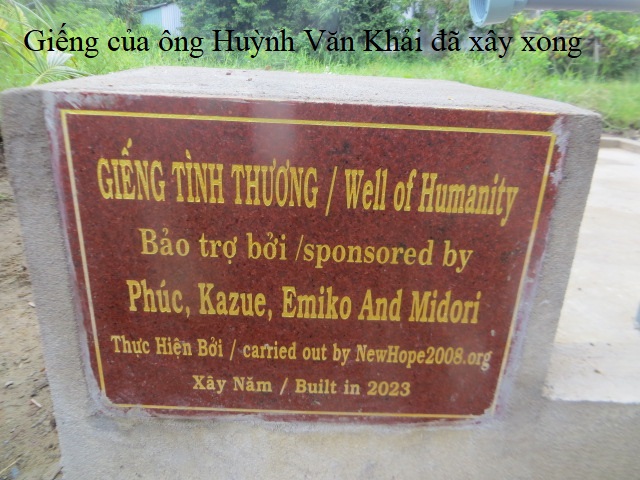 Ông Huỳnh Văn Khải, 42, tuổi, có ba người con là Huỳnh Đăng Khôi, 9 tuổi, Huỳnh Đăng Khoa, 7 tuổi và Huỳnh Khải Đâng, 5 tuổi. Ông Khải có cái nền nhà nhưng chưa có tiền cất, đang muốn xin cái giếng nước rồi ráng làm để kiếm tiền cất nhà. Hiện ông đang ở trọ nhà của cha mẹ ông là ông bà Huỳnh Văn Sáu và Nguyễn Thị Tím, tại số nhà 166/2, ấp An Ngãi xã An Thuận, huyện Thạnh Phú, tỉnh Bến Tre. Cái wiếng sẽ được xây ở kế nền nhà của ông.