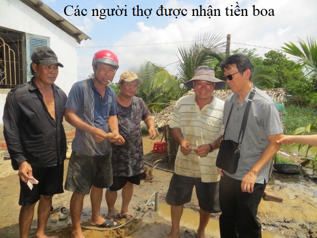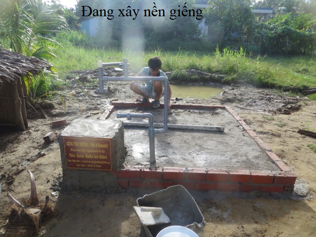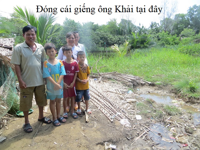 Mr. Huynh Van Khai, 42 years old, has three children: Huynh Dang Khoi, 9 years old, Huynh Dang Khoa, 7 years old and Huynh Khai Dang, 5 years old. Mr. Khai has a foundation but has not had money to build a house. He wants to ask for a well and then try to work to earn money to build a house. Currently, he is staying at the house of his parents, Mr. and Mrs. Huynh Van Sau and Nguyen Thi Tim, at house number 166/2, An Ngai hamlet, An Thuan commune, Thanh Phu district, Ben Tre province. The well will be built next to his house.