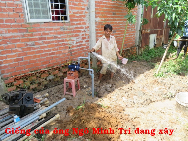 Mr. Ngo Minh Tri, 33 years old, lives in Cau Tre, Binh Thanh Commune, Thanh Phu District, Ben Tre Province. There are 3 people in his family: himself, his wife and their daughter. Every day he and wife hire work whatever odd jobs they could find. They do not own any land; the house does not have fresh water well, so it is very necessary for them to have one for their daily lives.