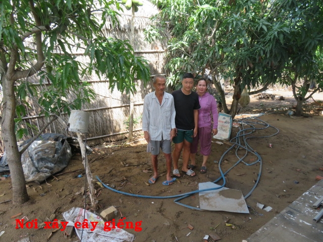 Mr. Huynh Van Lam, 76 years old, lives in Con Mit, Thanh Phong commune, Thanh Phu district, Ben Tre province. The family has 5 people: himself, 2 children and 1 grandchild. The family has no land, so they work whatever odd jobs they could find daily to support themselves. The house doesn't have a well and they have to ask neighbors to use it, so it's very necessary for them to have one.