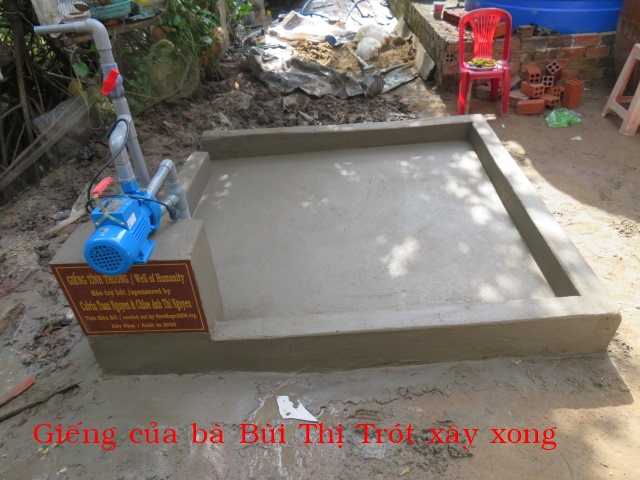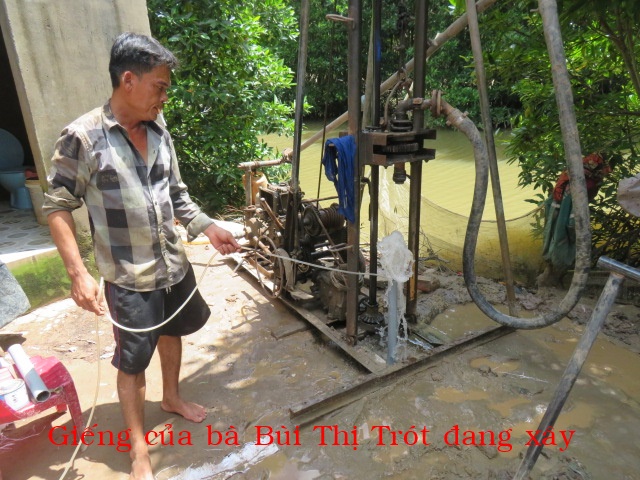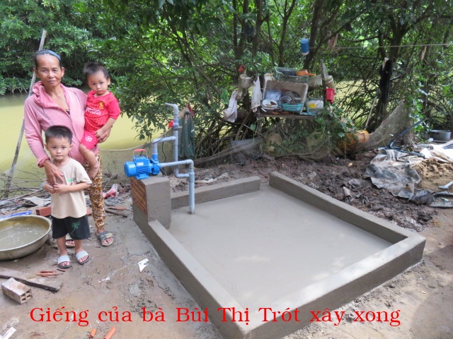 Bà Bùi Thị Trót 61t, nhà ở Cồn Lớn, xã Thạnh Phong, tỉnh Vĩnh Long. Gia đình có 4 người: bà, 1 con và 2 cháu. Hàng ngày ai thuê gì thì làm nấy, nhà không có cây giếng nước ngọt nên rất cần.