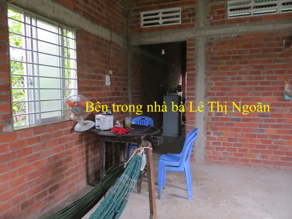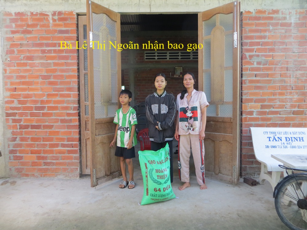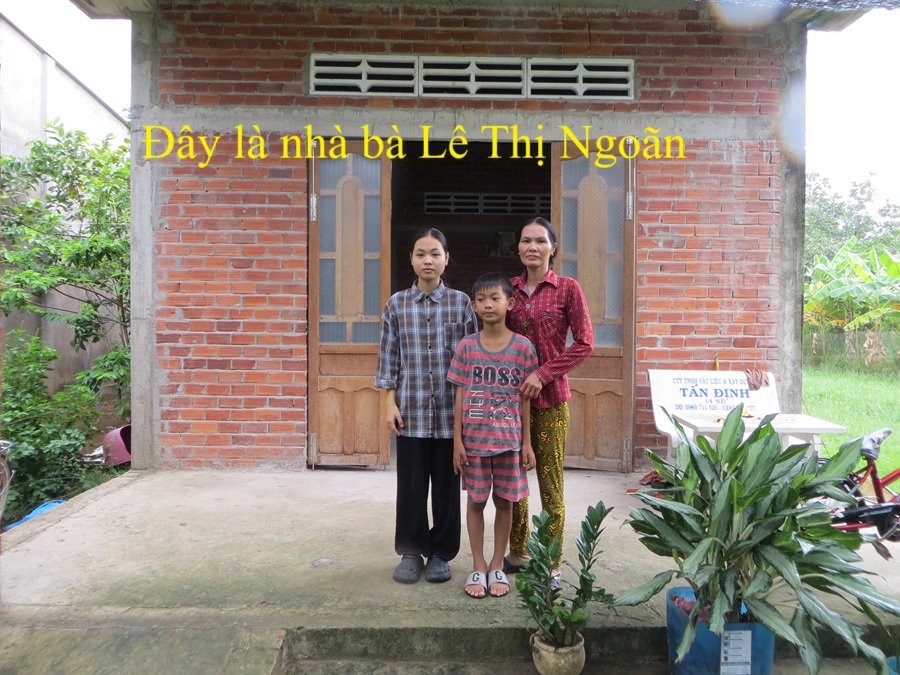 Bà Lê Thị Ngoãn, 48 tuổi, chồng là ông Phan Văn Nghĩa, 48 tuổi bị tại nạn xe nên không đi đứng được bị liệt nằm một chỗ. Bà Ngoãn có 2 gnuoiwf con là Phan Kim Ngân 17 tuổi đang học lớp 11 và Phan Văn Lượng 11 tuổi học lớp 5. Bà Ngoãn hang ngày đi làm nhang cho hang xóm chỉ đủ sống qua ngày. Còn chồng thì không còn lao động được nên bà không có kahr năng đóng cái giếng nước. Hàng ngày bà xin nước ở hang xóm về xài. Bà Ngoãn không có số nhà và hiện cư ngụ tại ấp Thạnh Quí A, xã Bình Thạnh, huyện Thạnh Phú, tỉnh Bến Tre.