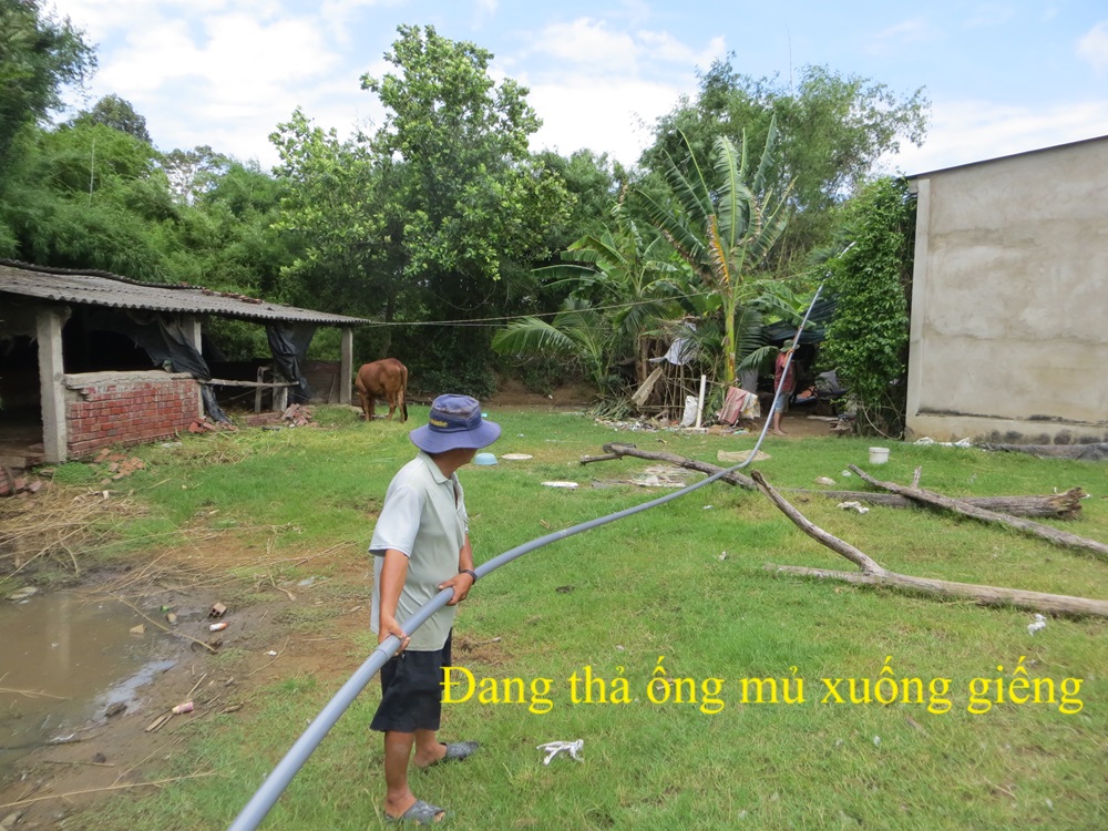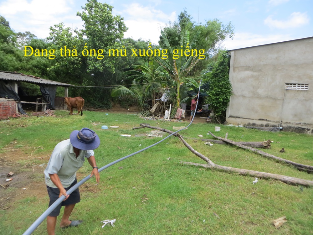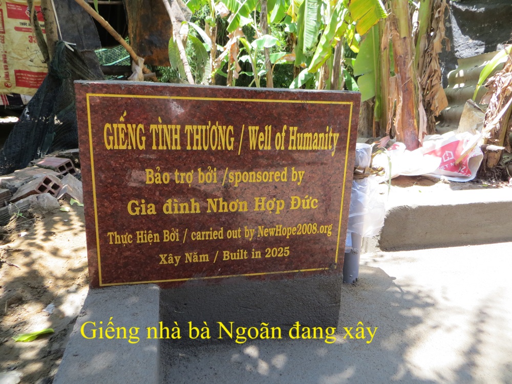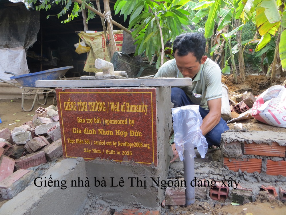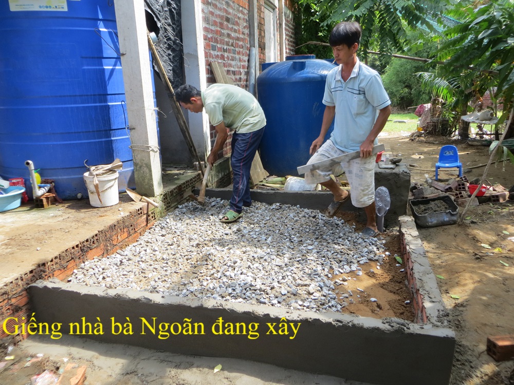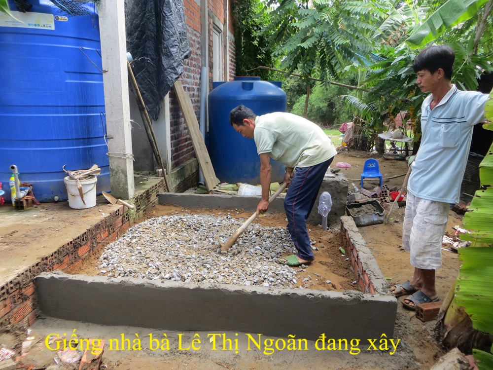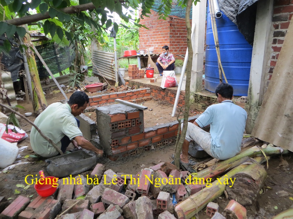 Ms. Le Thi Ngoan, 48 years old, her husband Mr. Phan Van Nghia, 48 years old, had a traffic accident and could not walk and was paralyzed. Ms. Ngoan has two children, Phan Kim Ngan, 17 years old, studying in grade 11, and Phan Van Luong, 11 years old, studying in grade 5. Ms. Ngoan makes incense for her neighbors every day, just enough to make ends meet. As for her husband, he can no longer work, so she cannot afford to build a well. Every day, she asks for water from her neighbors to use. Ms. Ngoan does not have a house number and currently lives in Thanh Qui A hamlet, Binh Thanh commune, Thanh Phu district, Ben Tre province.